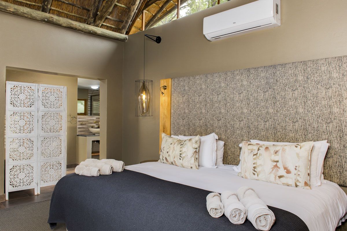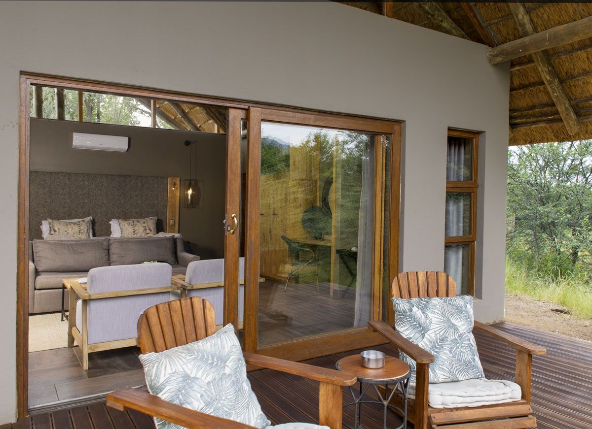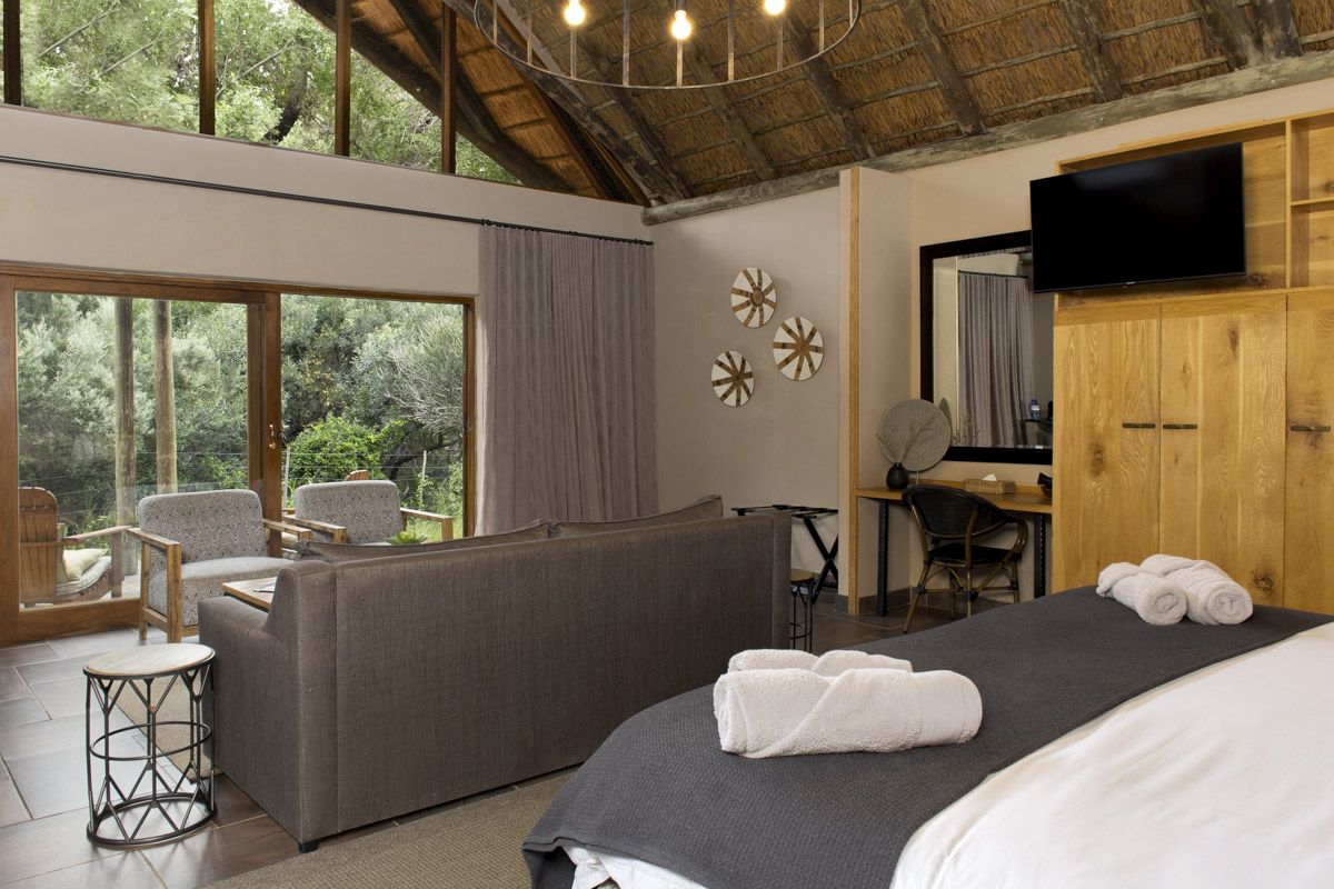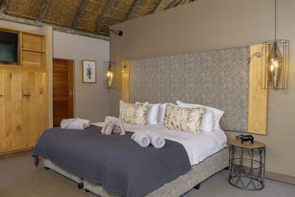 Each of our 19 Suites are generously spacious, featuring a large bedroom and a comfortable living area that opens onto a private veranda overlooking the African bushveld. Designed to blend seamlessly with the natural surroundings, the suites are elegantly furnished and thoughtfully equipped with modern comforts. Guests can enjoy tea and coffee-making facilities, a minibar, and a Smart TV loaded with Netflix, Showmax, and YouTube for relaxed in-room entertainment. Each suite also includes an en-suite bathroom with both an indoor and outdoor shower, a bath tub, and air-conditioning to ensure comfort throughout the seasons.